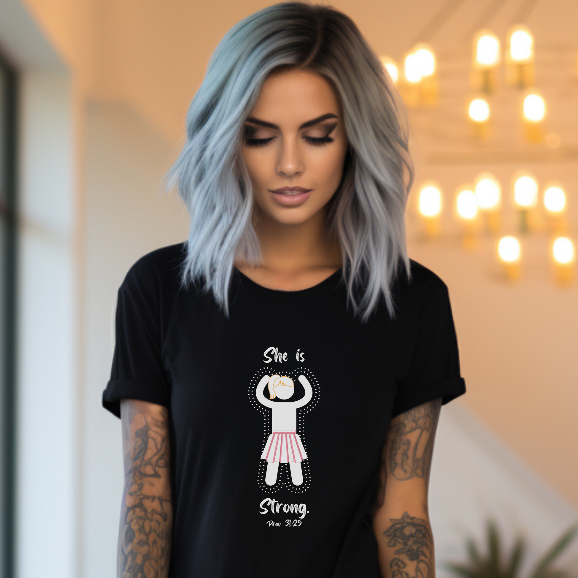 She is Strong Proverbs 31:25 Christian Women’s T-Shirt – Faith-Based Inspirational Tee